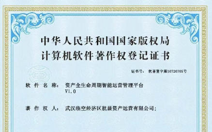 喜报 | 资产全程可控!航晨置业公司首获智能运营平台软著认证